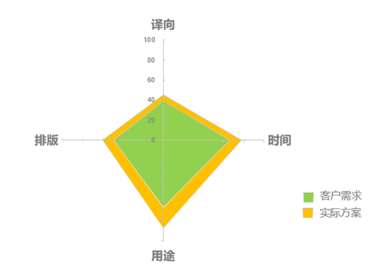 服務性需求,即通過前期了解,明確客戶的項目背景,項目所在國,行業,以及該項目的階段等。通過上述的信息對項目在時間、流程等節點上進行分析規劃,引導客戶的需求落地,對項目進行合理的生產計劃安排。同時,對數量和費用進行預估,讓客戶對產品結果所帶來的經濟成本有心理預期。針對特殊的項目,更重要的是預告項目的風險,避免因為不可抗的因素導致我們的產品遠低于客戶預期需求,為客戶提供咨詢式的翻譯服務產品及項目解決方案。