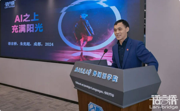 西南交通大學(xué)外國(guó)語(yǔ)學(xué)院院長(zhǎng)俞森林在致辭中介紹了外語(yǔ)教學(xué)和外語(yǔ)學(xué)科的發(fā)展歷程、外語(yǔ)學(xué)院在助力中國(guó)高鐵“走出去”和“一帶一路”建設(shè)的重要貢獻(xiàn),指出“軌道交通翻譯與國(guó)際傳播基地”的成立在助力人才培養(yǎng)、科學(xué)研究、國(guó)際交流與合作方面的重要意義。他倡議與會(huì)單位共同成立“工程翻譯與國(guó)際傳播聯(lián)盟”,搭建工程翻譯與國(guó)際傳播事業(yè)發(fā)展有力平臺(tái),為深化全球工程技術(shù)交流與合作,推動(dòng)構(gòu)建人類(lèi)命運(yùn)共同體作出新貢獻(xiàn)。在主旨報(bào)告環(huán)節(jié),來(lái)自政產(chǎn)學(xué)研的6位專(zhuān)家圍繞軌道交通翻譯與國(guó)際傳播主題分享了深刻見(jiàn)解。朱憲超董事長(zhǎng)做了“A之上,充滿陽(yáng)光”的主題分享,探討了人工智能時(shí)代翻譯服務(wù)和人才培養(yǎng)話題。他提出,要通過(guò)打造AI系統(tǒng)和專(zhuān)家系統(tǒng)以實(shí)現(xiàn)項(xiàng)目管理的高效能和項(xiàng)目翻譯的可靠性,并分析了語(yǔ)言橋從傳統(tǒng)翻譯企業(yè)向企業(yè)出海服務(wù)商轉(zhuǎn)變的發(fā)展趨勢(shì),指出外語(yǔ)和翻譯人才在人工智能時(shí)代仍是不可或缺的重要力量,并對(duì)新時(shí)代所需的語(yǔ)言人才提出了不一樣的要求。