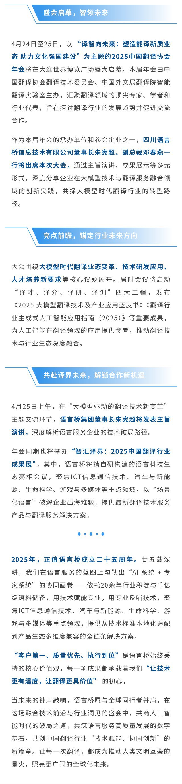 2025中國翻譯協(xié)會年會即將啟幕!語言橋邀您共赴盛會