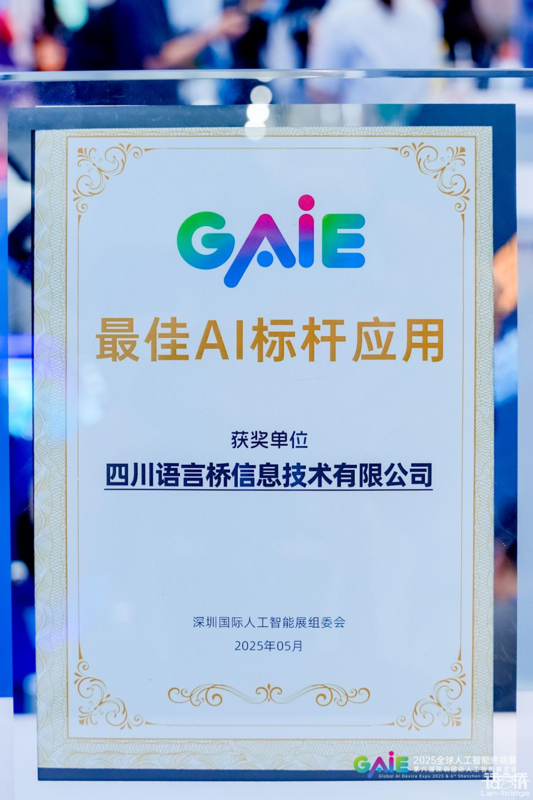 展會期間,語言橋憑借其自主研發的AI翻譯與多語言處理技術,從數家參展企業中脫穎而出,榮獲“最佳AI應用獎”。