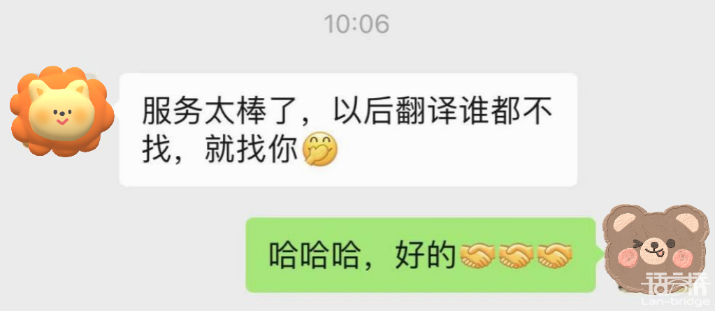 與優(yōu)秀企業(yè)的合作,不只是簡(jiǎn)單的商業(yè)往來,更是互利互贏的戰(zhàn)略共生。這些企業(yè)往往對(duì)合作伙伴有著高標(biāo)準(zhǔn)、嚴(yán)要求和更高的期待,這就如同高懸的達(dá)摩克利斯之劍,時(shí)刻鞭策著語言橋需要不斷進(jìn)行自我革新,精益求精,專業(yè)化發(fā)展。正是在與這些優(yōu)秀企業(yè)共同成長(zhǎng)的過程中,語言橋也鑄造了堅(jiān)實(shí)的市場(chǎng)基石。
