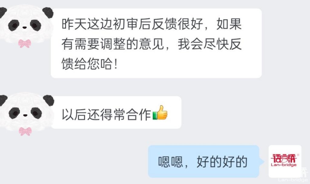 “為客戶創(chuàng)造價(jià)值”,這不是一句空洞的口號(hào),而是語言橋始終踐行的使命。“客戶第一、質(zhì)量?jī)?yōu)先、執(zhí)行到位”是每一個(gè)語言橋人刻在腦海里的工作準(zhǔn)則。