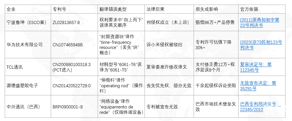 專利翻譯引發的訴訟案件(圖源:裁判文書網)